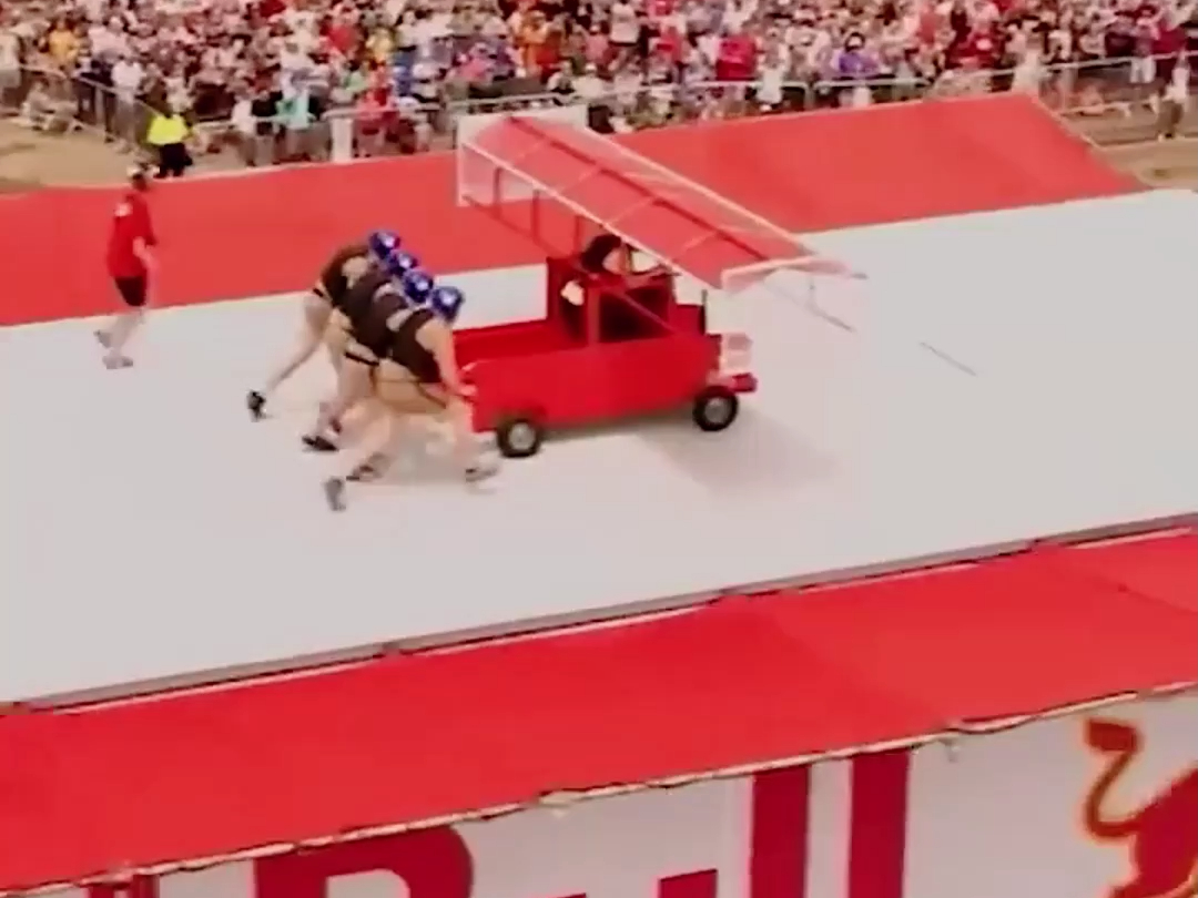 水上滚圆木大作战,怎样才能不掉下去呢?