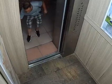酒店工作人员乘坐电梯准备下班,原本两人开心聊天 ,转身时毫无防备被电梯贴纸吓了一跳!!