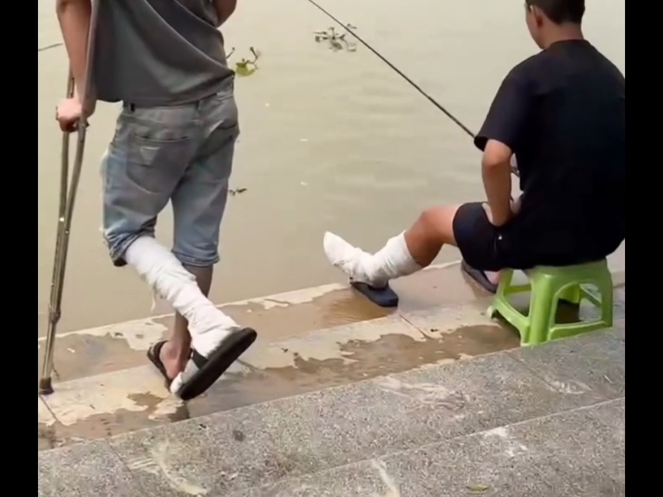 钓鱼太难了,禁止钓鱼,规违者打断腿,为了钓鱼,也是拼了。
