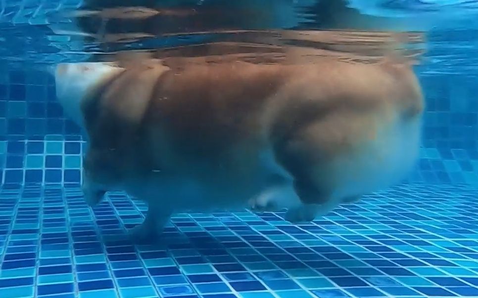 整个泳池只有柯基在游泳,其他狗都在泡脚