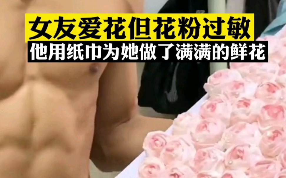 女友花粉过敏,他用纸巾为她做了满满的鲜花。