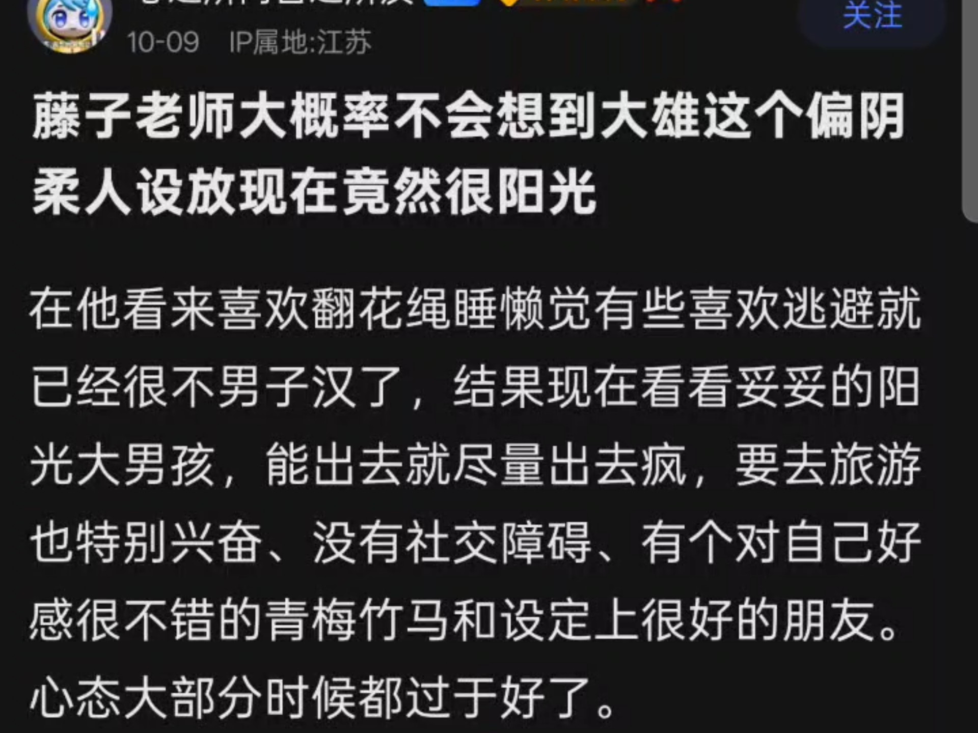 藤子不二雄老师大概率不会想到大雄这个偏阴柔人设放现在竟然很阳光