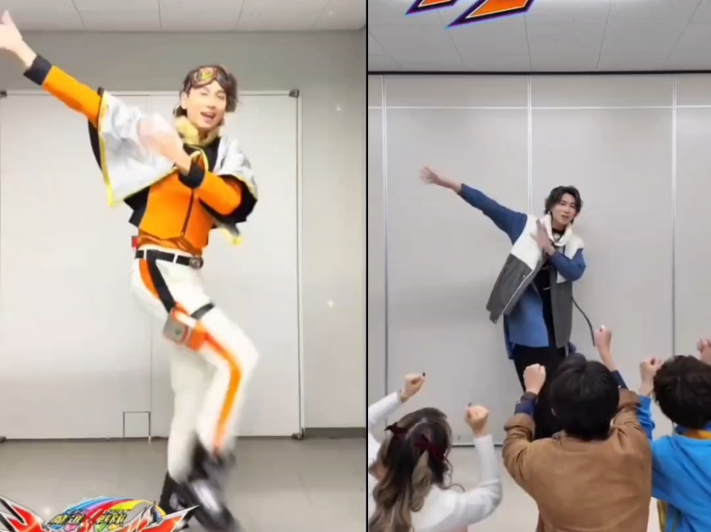 三人组当观众观看拉齐亚/宝路(庄司浩平)跳魔进战队ED舞(假面骑士加布)