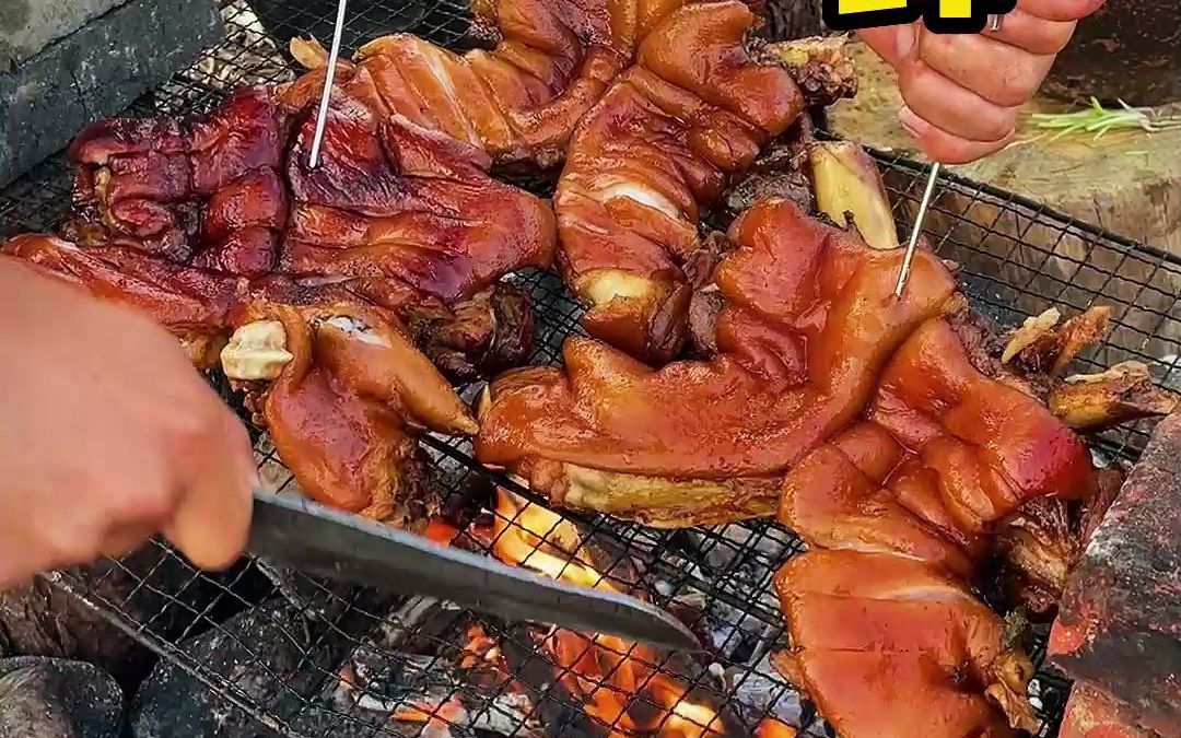 卤好的猪蹄,刷一层蒜蓉辣椒酱,再撒上一把孜然辣椒面,馋不馋。