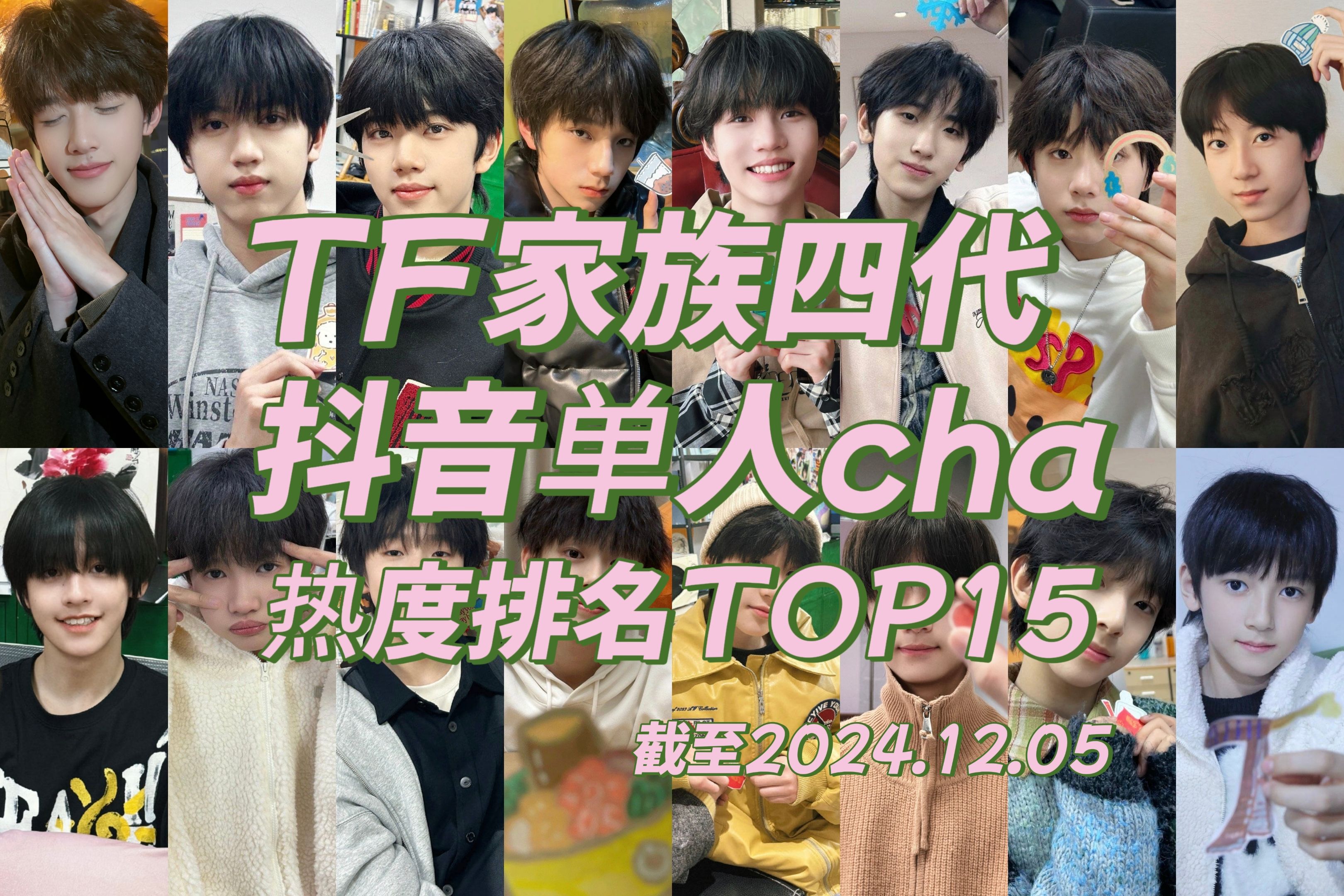 【TF家族四代】第1期:抖音单人cha热度排名TOP15,陈奕恒第一,杨博文张桂源占领前三