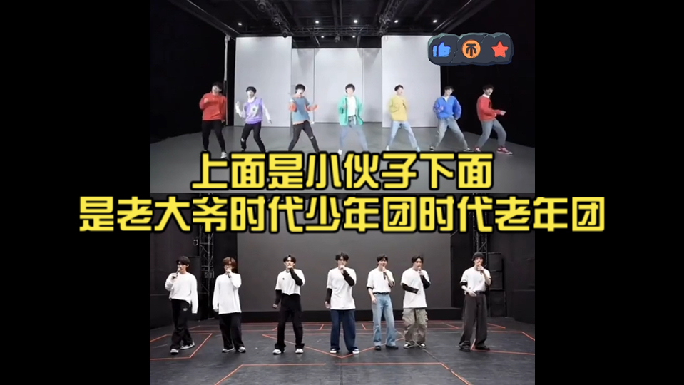 上面是小伙子下面是老大爷时代少年团时代老年团