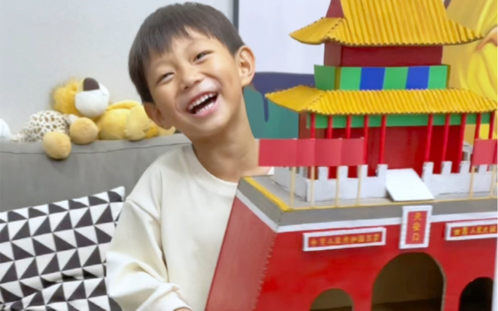 爸爸用快递纸箱给孩子做个大玩具,居然连电视都不看了