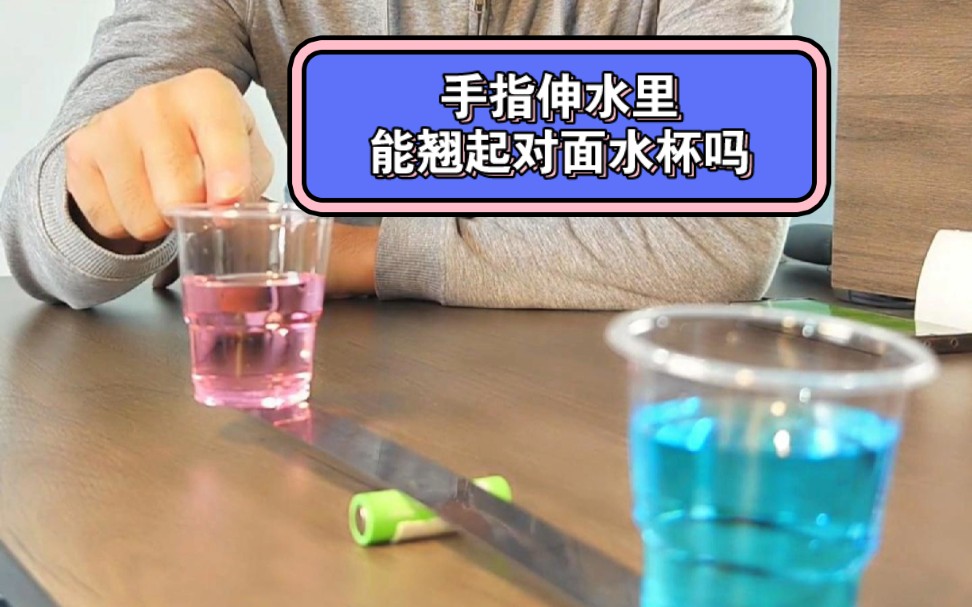 把手手指伸进水杯里,能翘起对面的水杯吗 | 科学小实验 | 这个小明 |力学实验 |中学物理实验