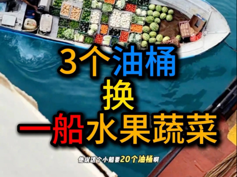 废物再利用,帮公司处理了费油,我们换到了新鲜的水果蔬菜,小船换到了需要的废油桶,三方盈利,大家好才是真的好!