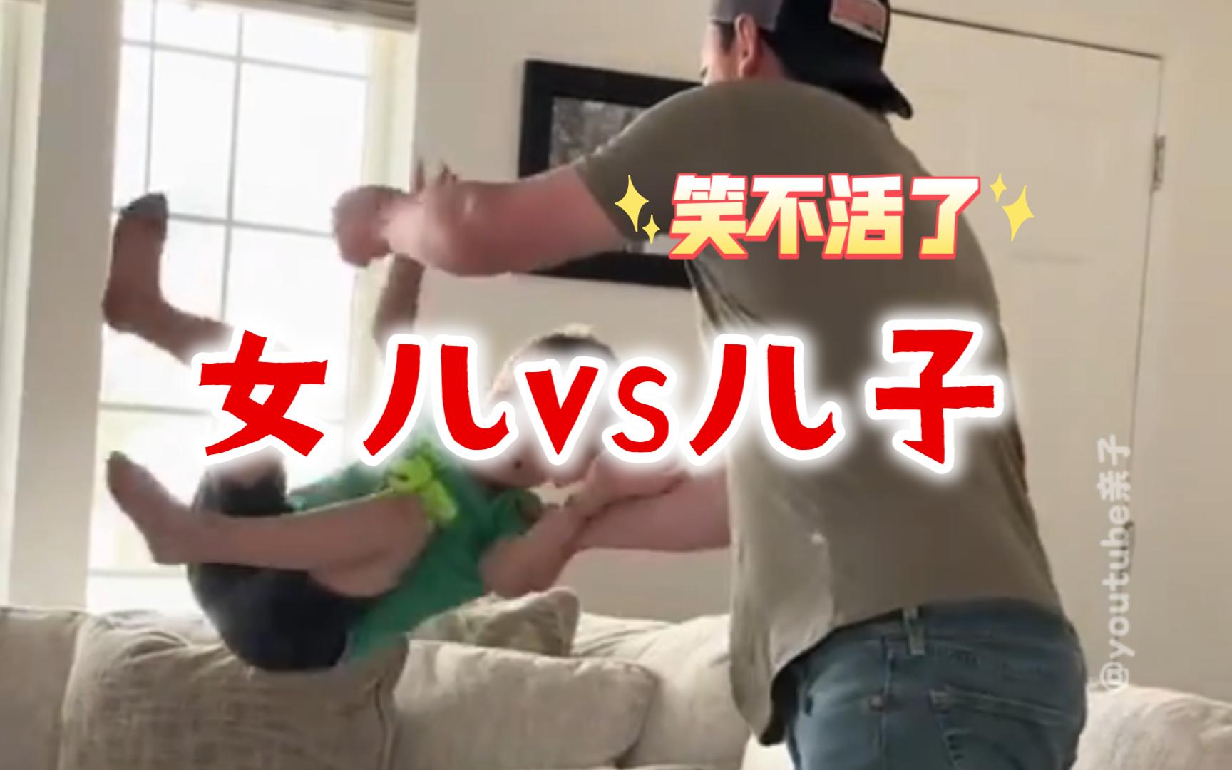 爸爸跟女儿们摔跤,貌似也能玩得很开心~