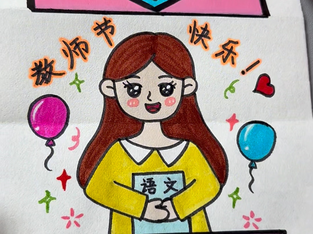 有趣的教师节创意折叠画,跟我提前画起来,送给亲爱的老师吧#教师节绘画 #创意美术 #折叠画