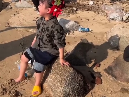 女儿的拖鞋被冲到海里伤心大哭,求爸爸帮忙去捡拖鞋,网友:问她要爸爸还是要拖鞋……