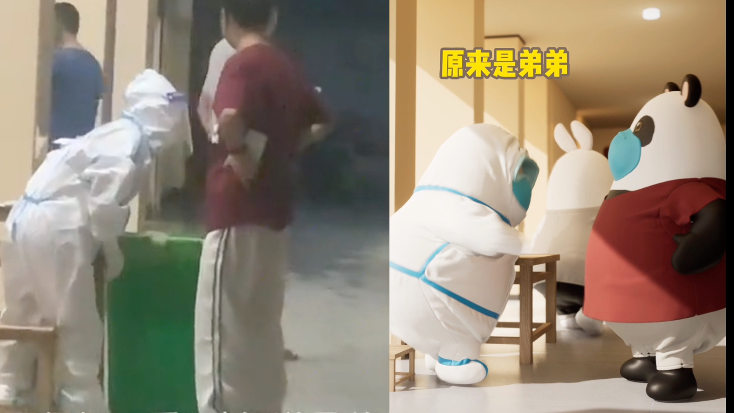 大白到学校做核酸,认出弟弟后秒变姿势,家长范儿瞬间拿捏。真人版和动画版