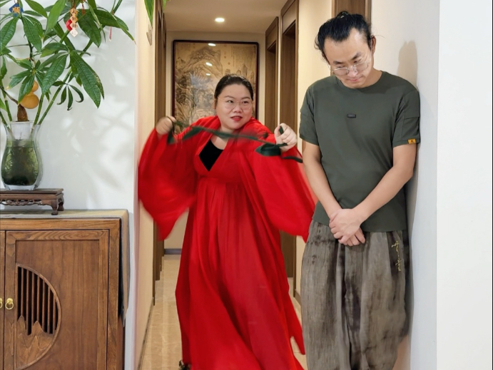 哎呀,闲着也是闲着,给我家男人来个小节目吧。他太有福了#古典舞 #跳舞 #给老公跳舞