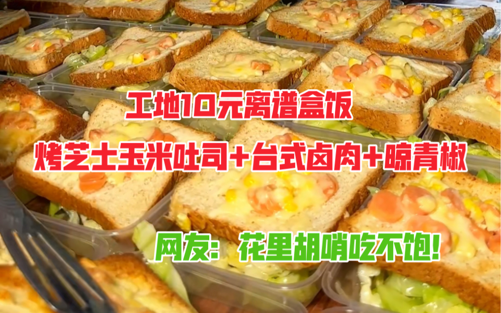 工地10元离谱盒饭,有烤芝士玉米吐司,台式卤肉和晾青椒,网友:花里胡哨吃不饱!