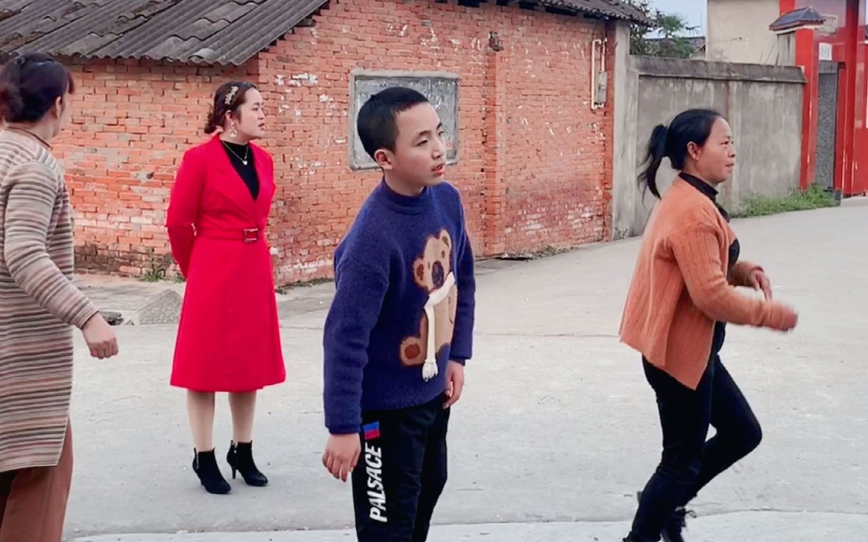 轩轩第一次和几位阿姨学跳广场舞,虽然跳得不好,但在以前也是我们一家不敢想的