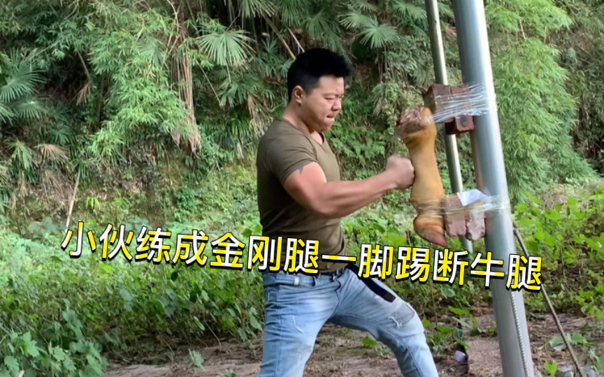 功夫硬汉小伙挑战劈秤砣,会成功吗