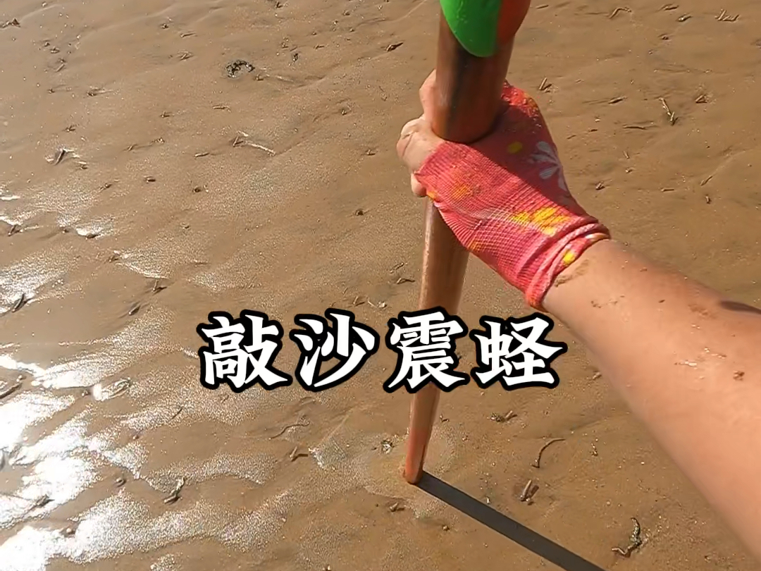 敲击沙滩震出蛏王洞盲抓大蛏王