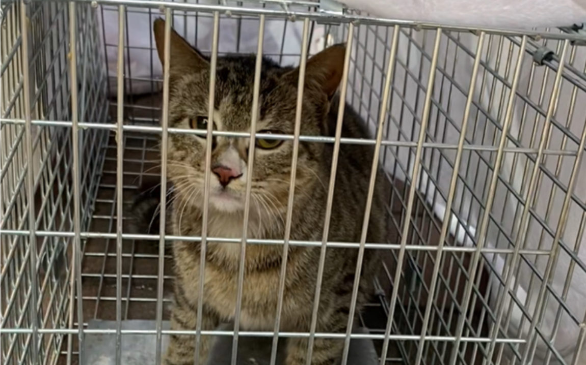 为了提升领养时的脸面,买了个大笼子装猫,大笼子刚到就立了大功