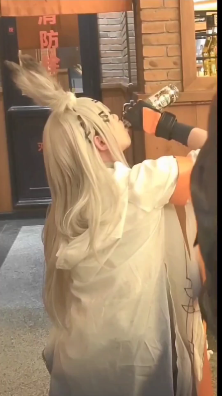 朋友拍的霜星嘬酒侧面视角