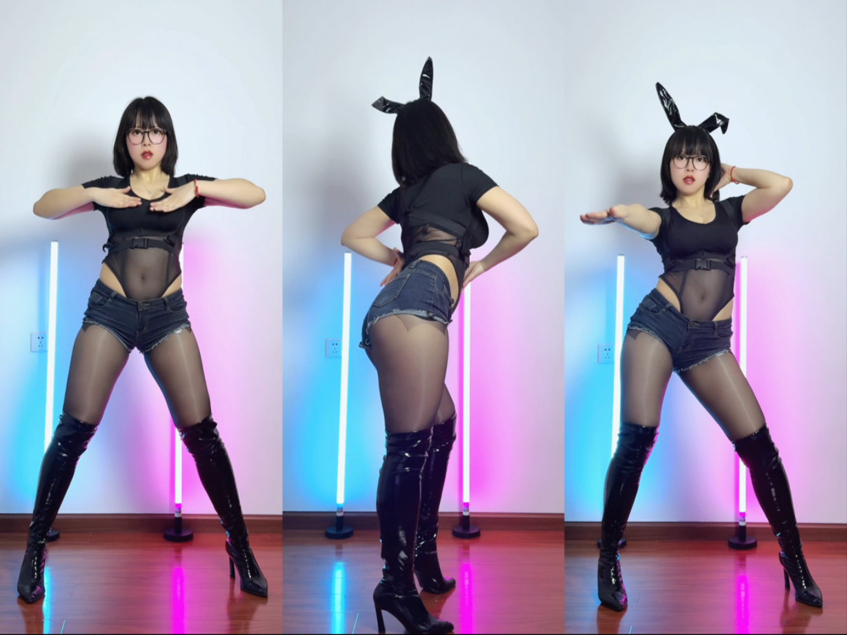 酷酷的短发兔女郎跳whiplash辣