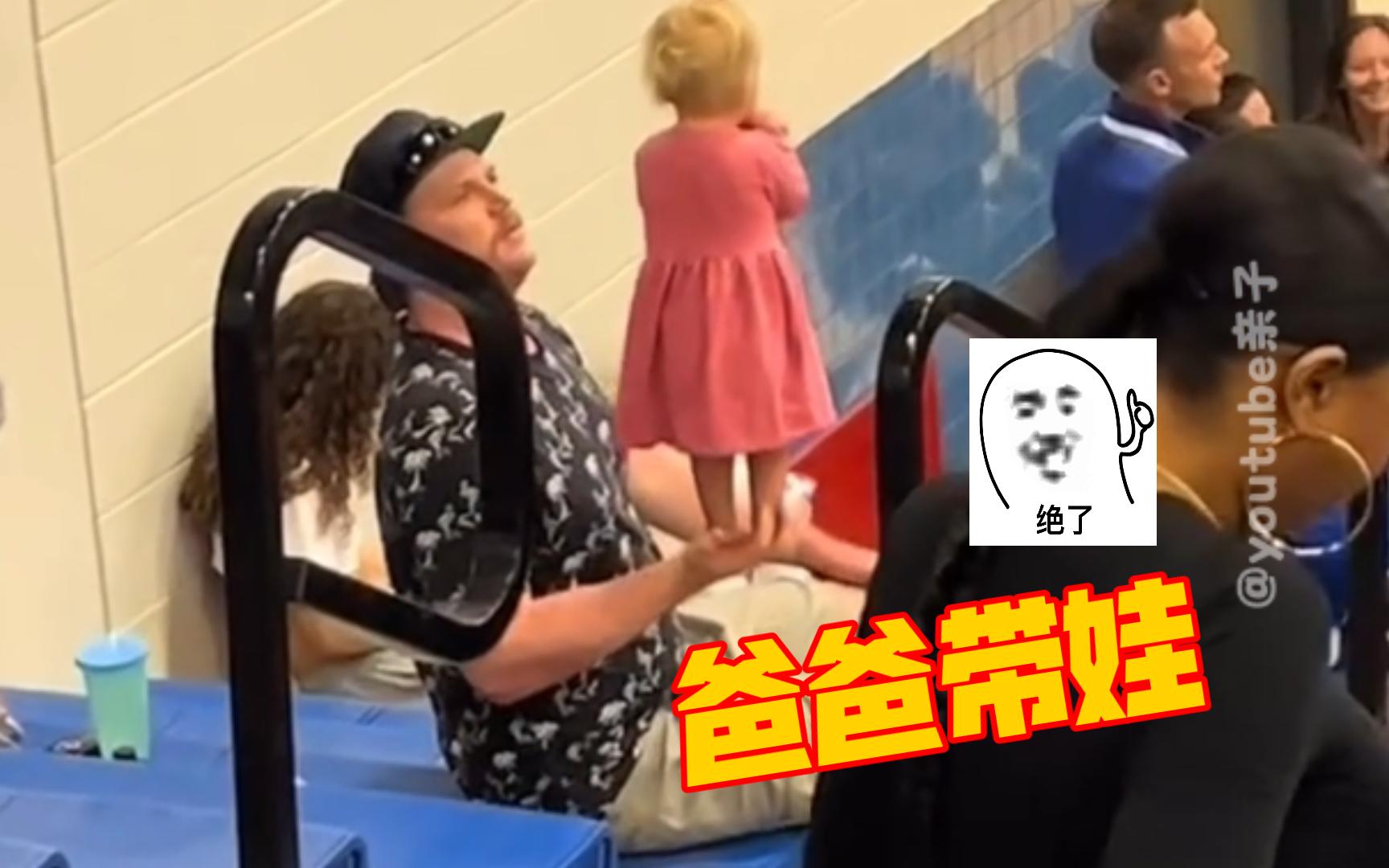 爸爸跟女儿们摔跤,貌似也能玩得很开心~