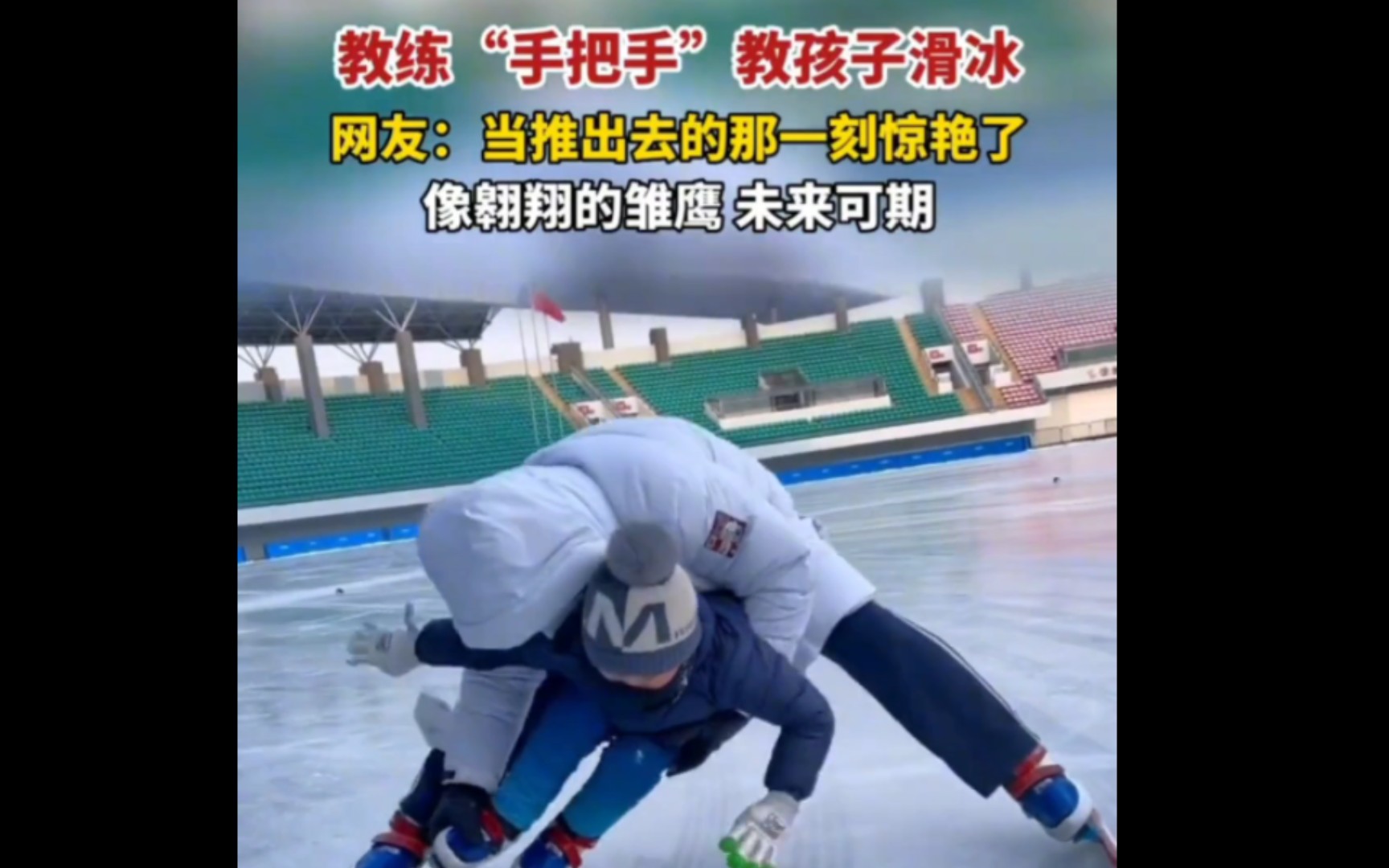 教练“手把手”教孩子滑冰,网友:当推出去的那一刻惊艳了,像翱翔的雏鹰!