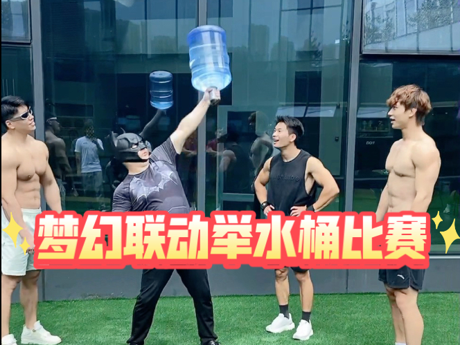 粉丝要求的梦幻联动,蝙蝠侠脂包肌PK肌肉男队,他们三位共举了7个,我举了14个,18.9升的欢迎高手来挑战。专业动作请勿模仿。