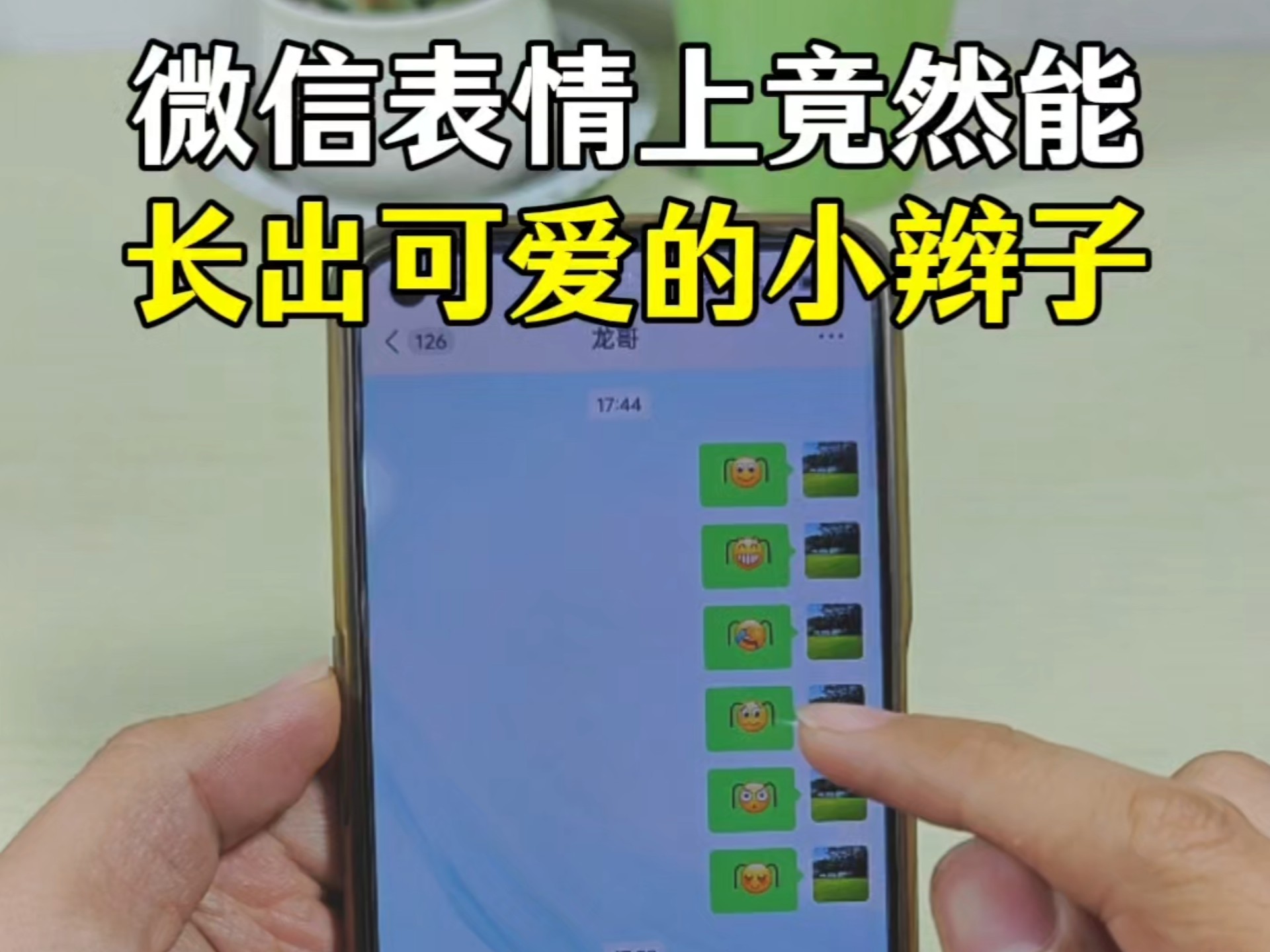 微信的表情上如何添加两条可爱的小辫子!