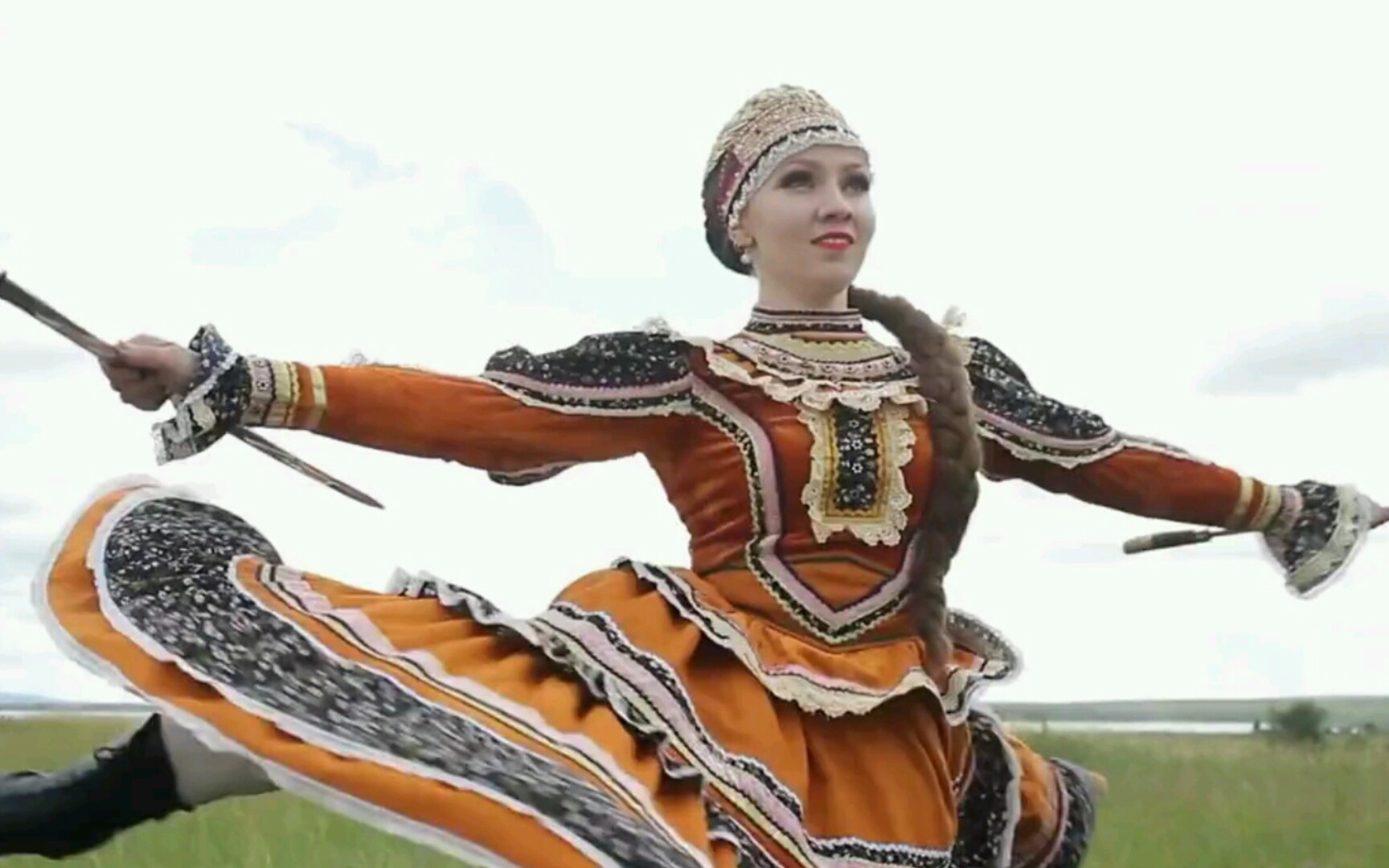 异域风情,战斗民族哥萨克美女传统双刀舞,英姿飒爽舞动不停!