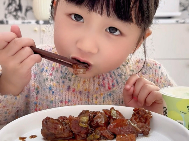 哈哈!萌娃吐槽晚饭全是素菜,当爸爸端出大骨头肉时眼睛都放光了,看到最后有亮点。