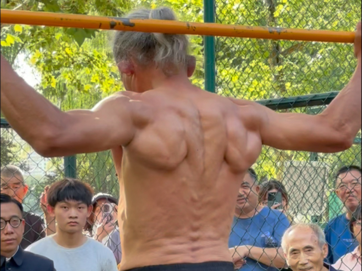 鬓微霜,又何妨?不建议老年人练单杠,容易伤了年轻人的自尊。