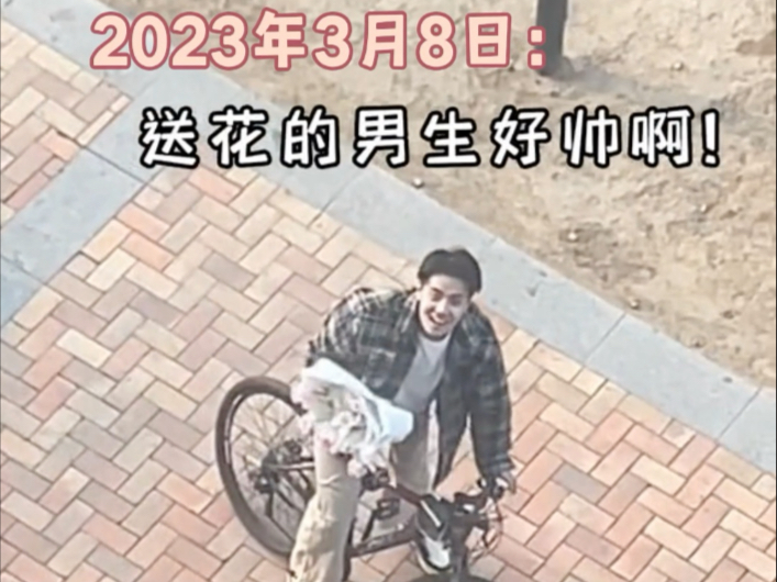 姐妹们,骑自行车送花的男生真的蛮帅的