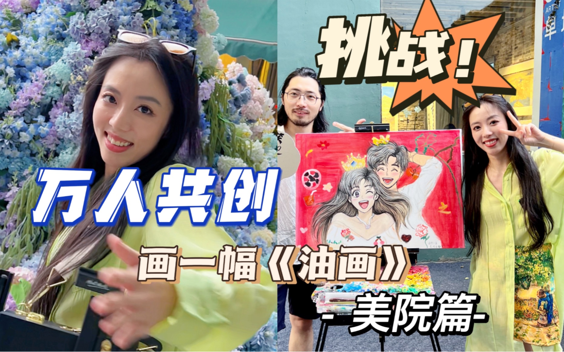 挑战“万人”共创一幅油画 今天是中国美院!老师们都夸我啦 嘻嘻~