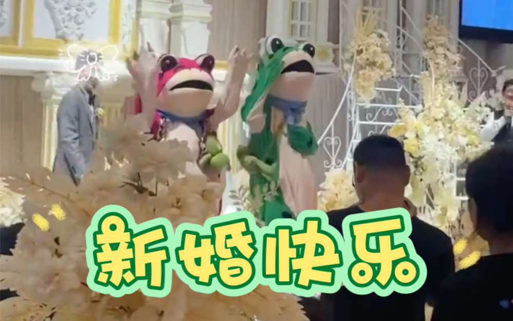 亲戚朋友:新郎新娘人呢?父母:跳舞那两只蛤蟆就是~