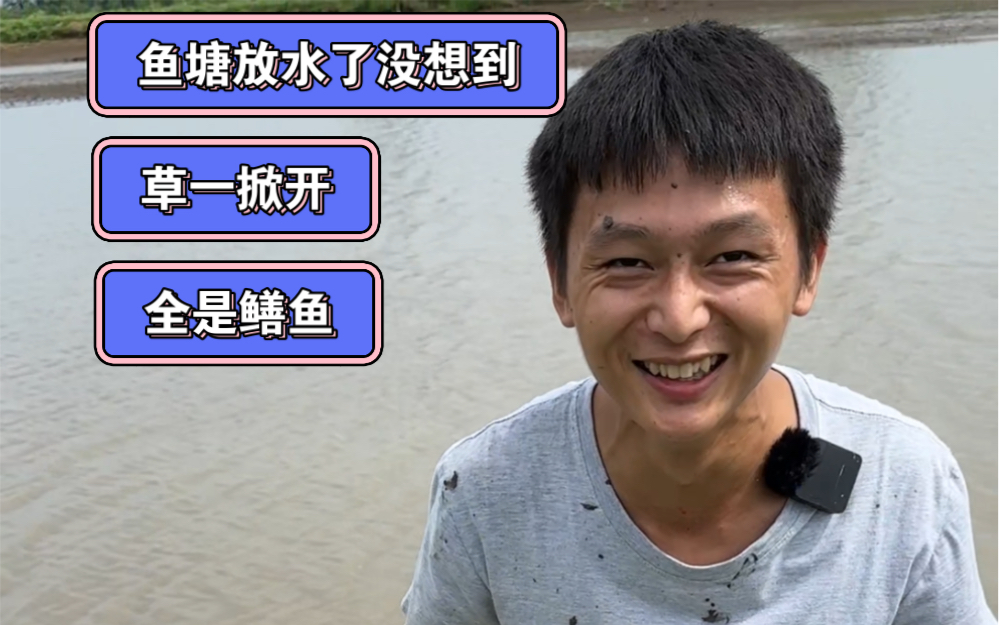 鱼塘放水了,鳝鱼全都躲在草下面,把草一掀开,今天又是捡鳝鱼的一天。