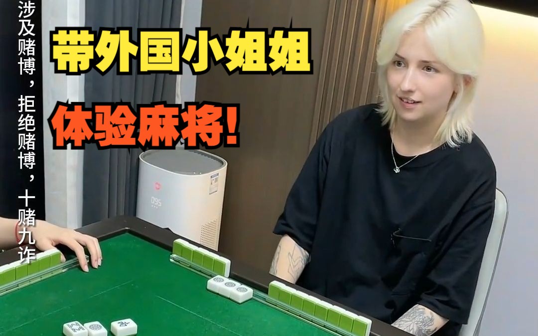 带外国小姐姐体验麻将,新手光环第一把就胡了