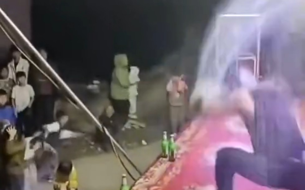 过期饮品集中喷射处理中