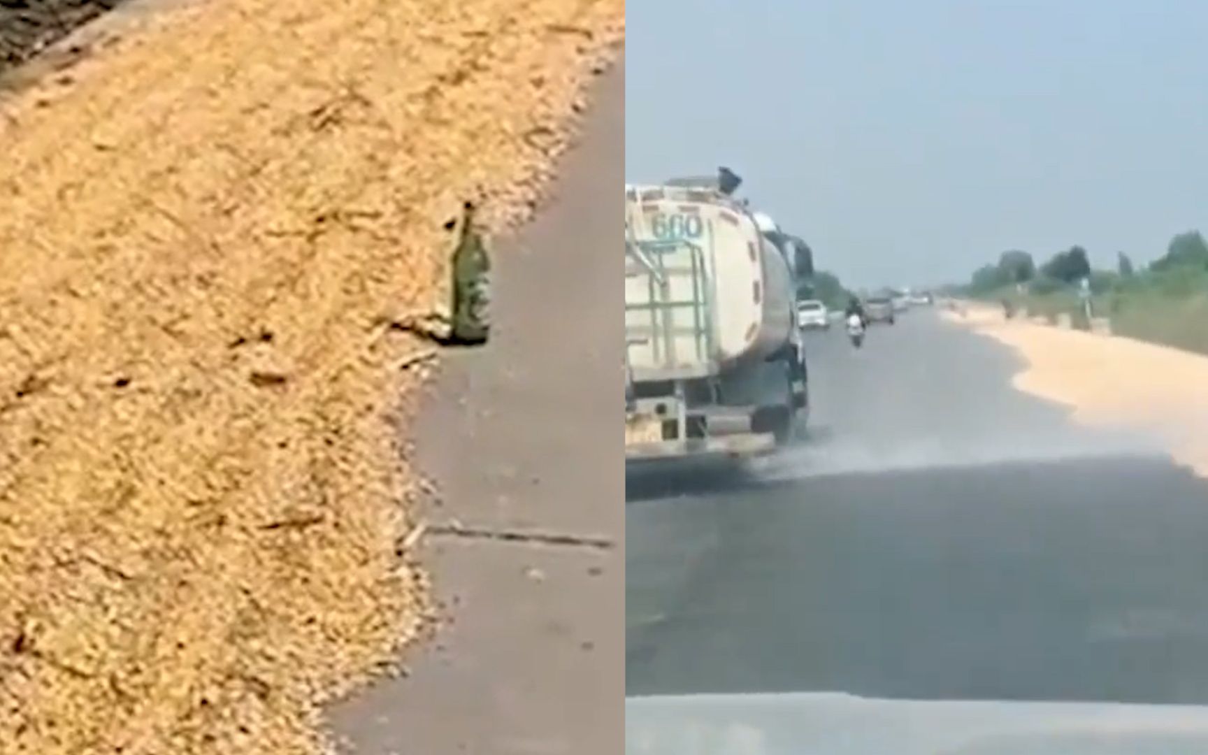 农民在马路晒庄稼还布置钉子,结果被洒水车浇湿,网友吵翻天!