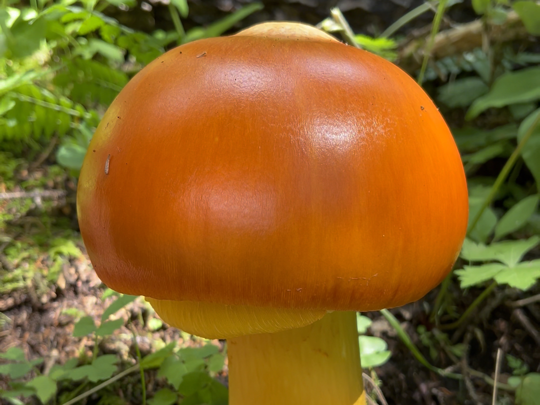 进山捡蘑菇,遇到几个大的鹅蛋菌,太漂亮了