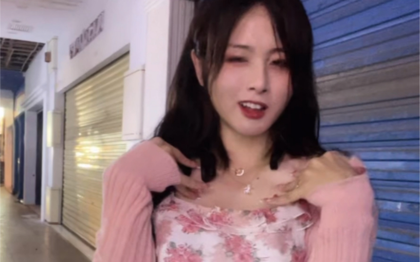 AD钙奶女装大佬户外直播碎花裙跳舞。