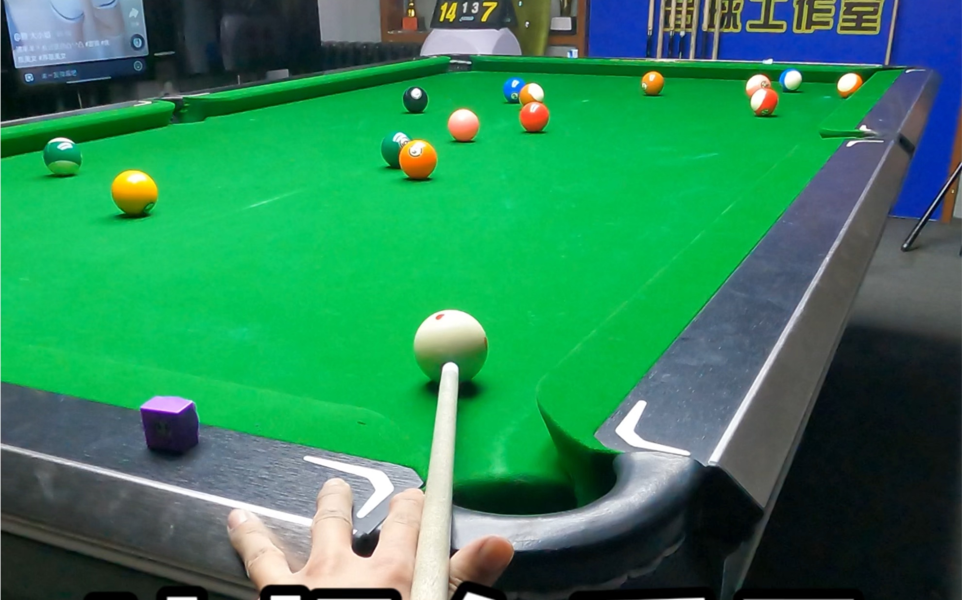 张镇辉台球教学【新手入门加塞球瞄准方法】