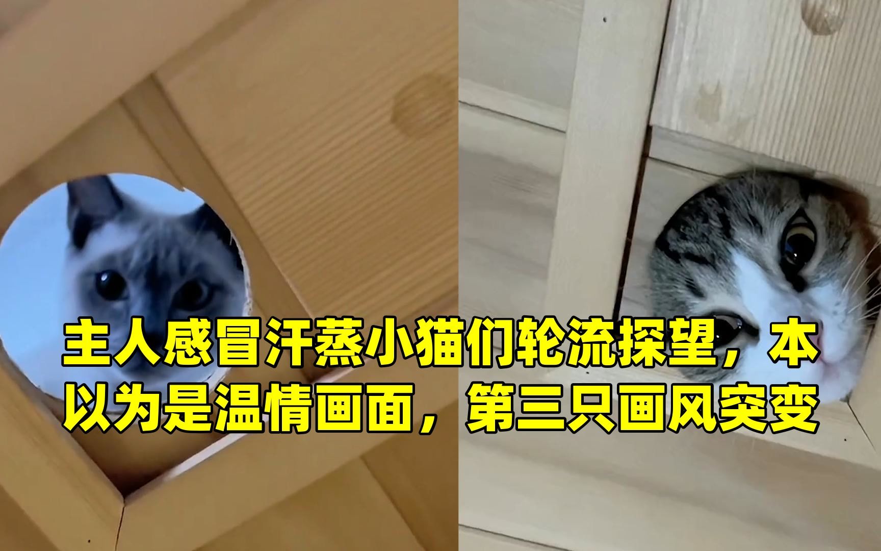 主人感冒汗蒸小猫们轮流探望,本以为是温情画面,第三只画风突变