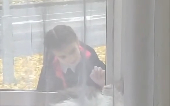 一个裤子上有个洞的男人和一个好奇的俄罗斯女孩