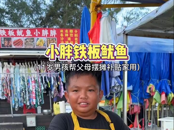 偶遇11岁小老板路边烤鱿鱼,可爱小胖超懂事!