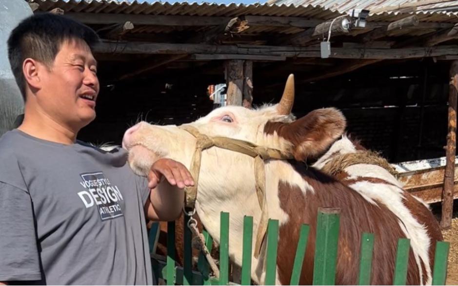 小牛犊脑子坏掉了,养牛户找我爸来给牛犊提高智商