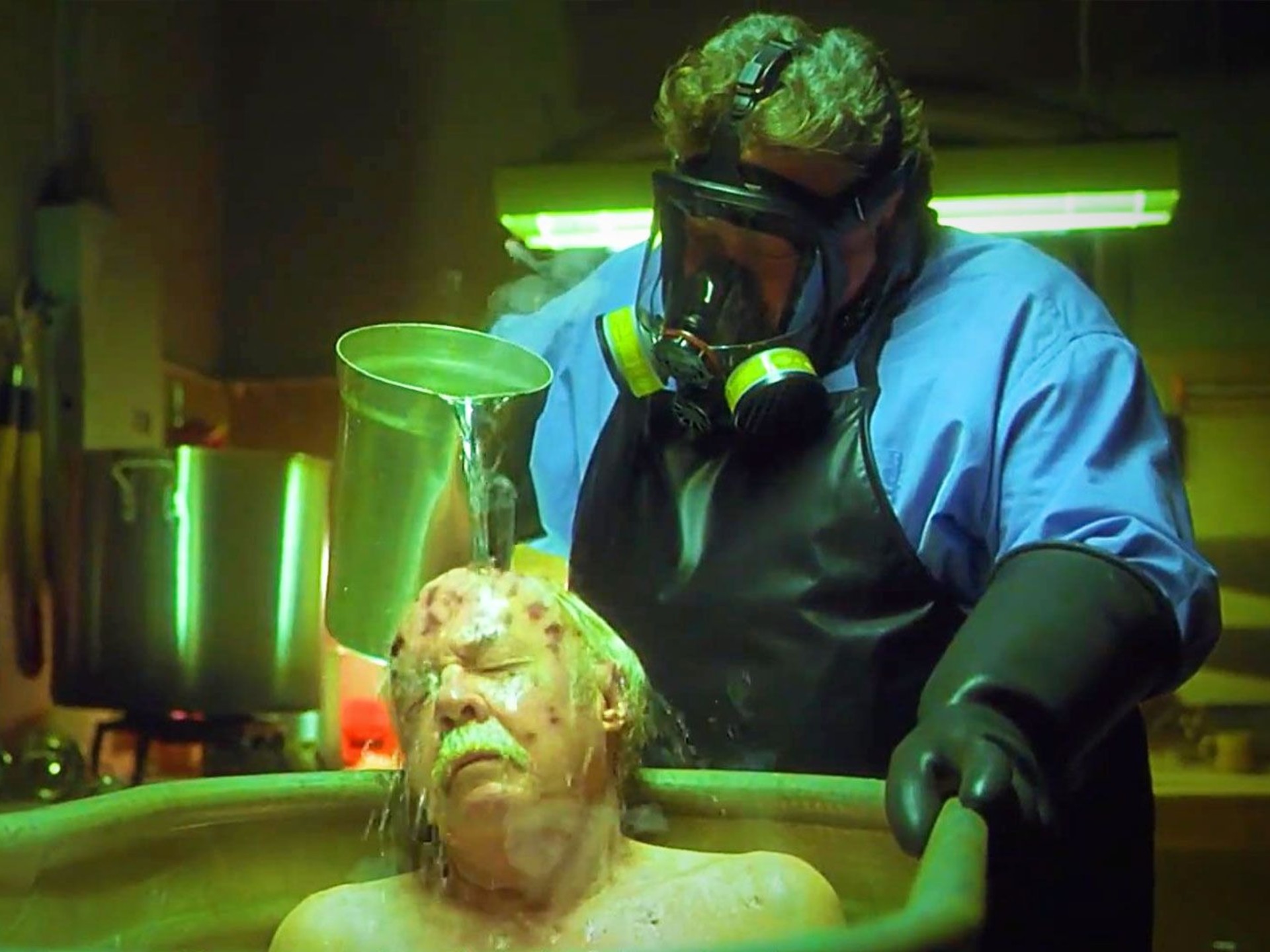 男人割下自己脑袋,吸引恶人上前,不料尸体暴起,一剑刺死恶人