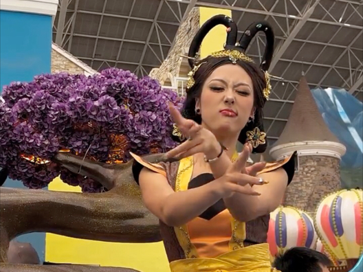 天津欢乐谷蛇精,今天蛇精不说话只跳舞,一看就是男生的原生相机拍的