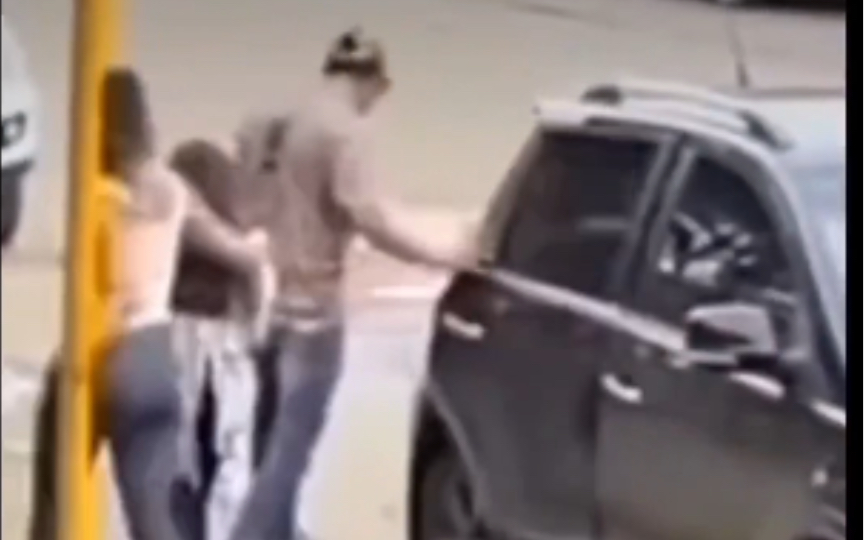 一个裤子上有个洞的男人和一个好奇的俄罗斯女孩