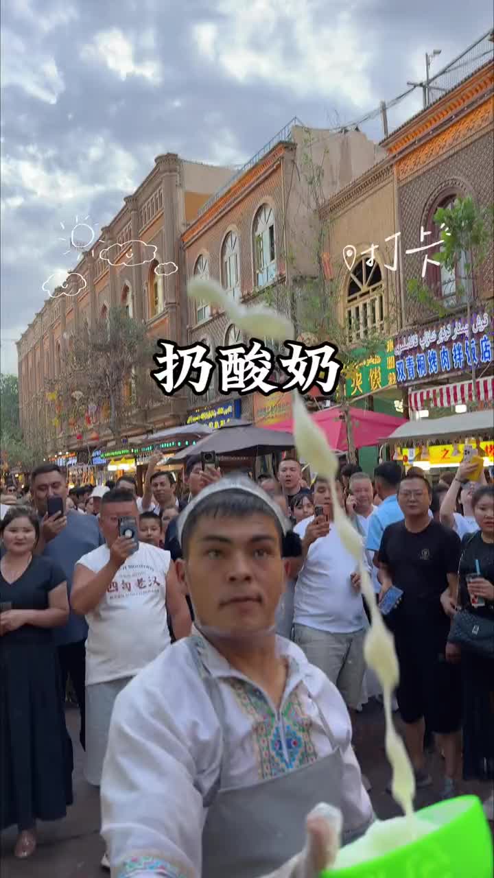 新疆街头扔酸奶!全扔我鞋里了!!!